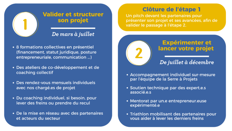 - La 1ʳᵉ étape mise sur la force du collectif : échanges, entraide et partages d’expériences entre porteurs